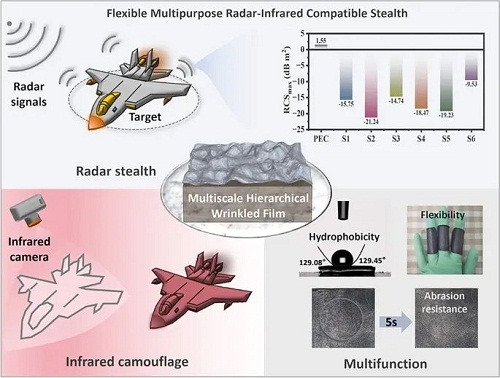 中文题目:磁电协同与多尺度分级结构设计实现柔性多用途微波吸收与红外隐身兼容